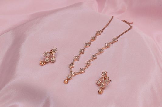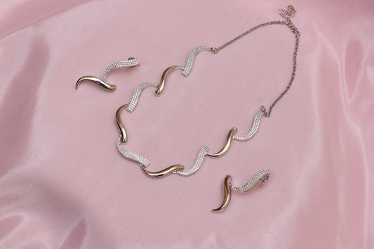 Rhodium-Plated Stone Studded Necklace & Earrings Set