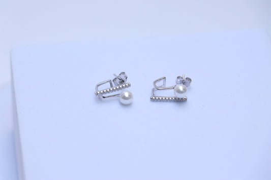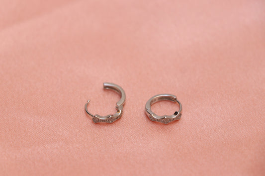 Zig Zag Diamond Studded Silver Hoop Earrings
