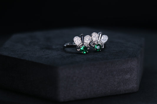 Rhodium-Plated Stone Studded Necklace & Earrings Set