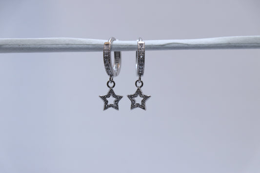 Star Star Silver Hoop Earrings