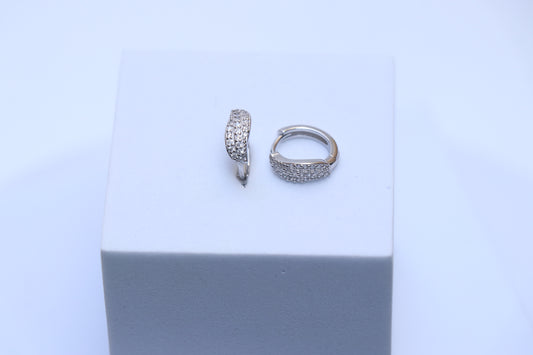 Diamond Studded Dainty Silver Hoop Earrings